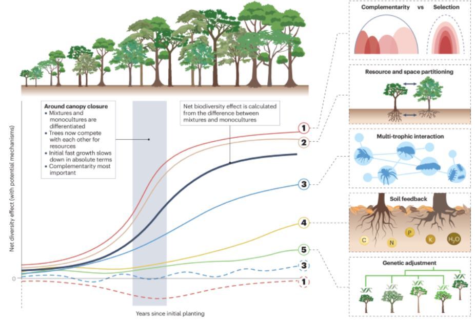 Forest biodiversity increases productivity via complementarity from greater canopy structural complexity.