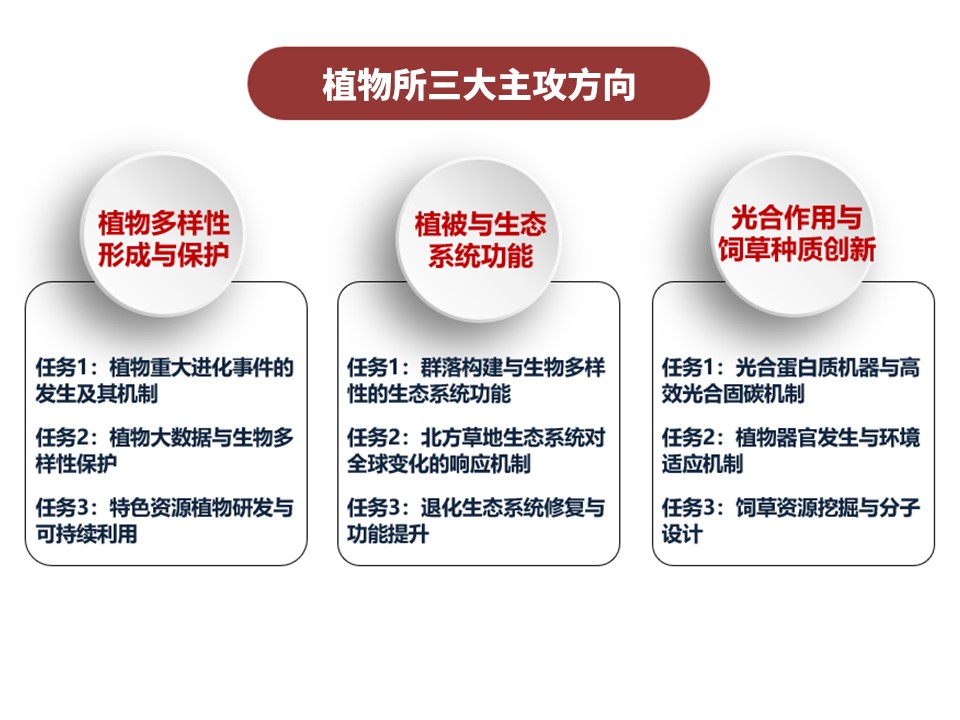 研究方向包括:植被格局与维持机制、生物多样性与生态保育、全球变化的响应与适应、生物地球化学循环、生态草牧业与可持续性。